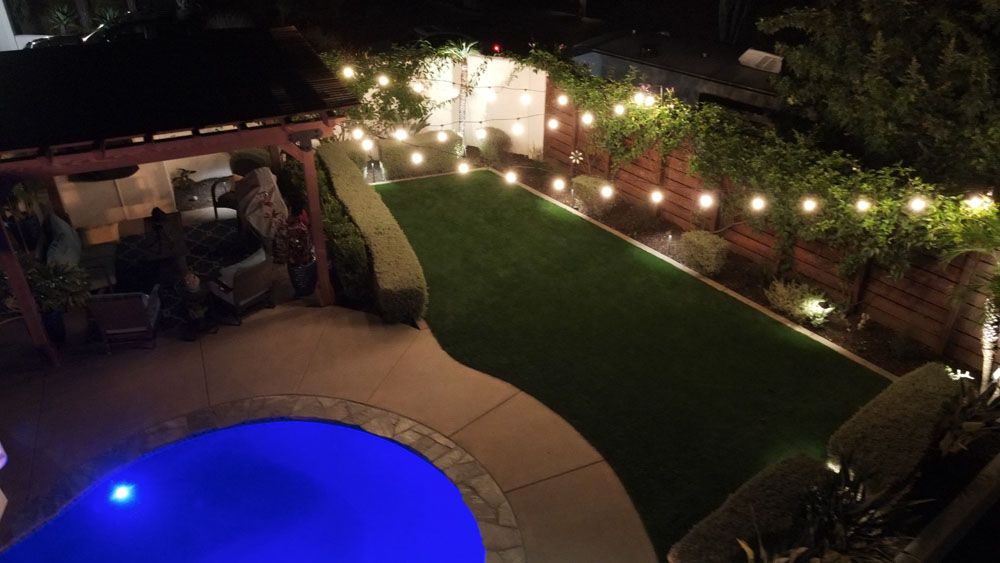 - Low-voltage LED landscape lighting system with over 30 fixtures for dramatic nightscaping.