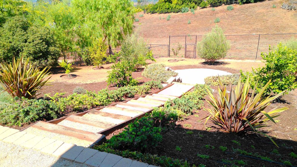 - Eco-friendly demolition of outdated landscaping and hardscape to prep for new features, including a future orchard.